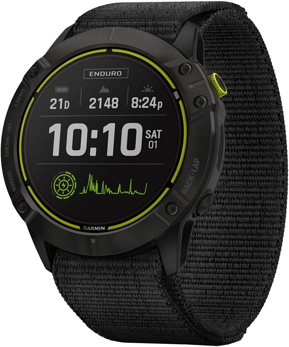 The GARMIN Enduro is a cutting-edge solar charging smartwatch designed specifically for extreme endurance athletes, featuring advanced health tracking and multi-sport functionalities. Its lightweight design and solar lens provide extended battery life, making it perfect for long outdoor adventures.