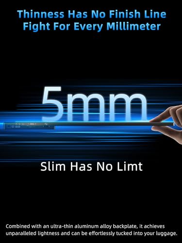 • Lightweight design at 571g and only 0.9cm thick for easy portability.