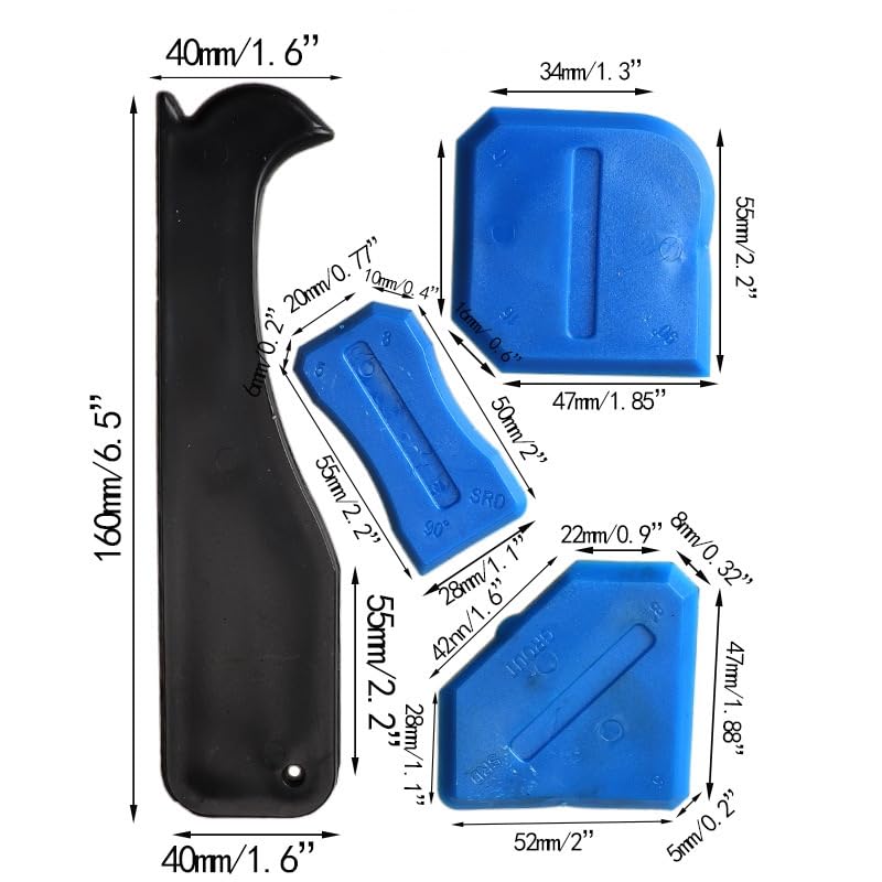 • 4-in-1 silicone caulk finishing tool set for applying and removing sealant