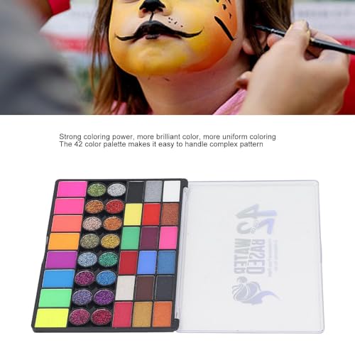 - Contains 48 pieces including 42 vibrant face paint colors, 4 stencils, and 2 brushes.