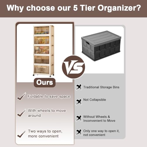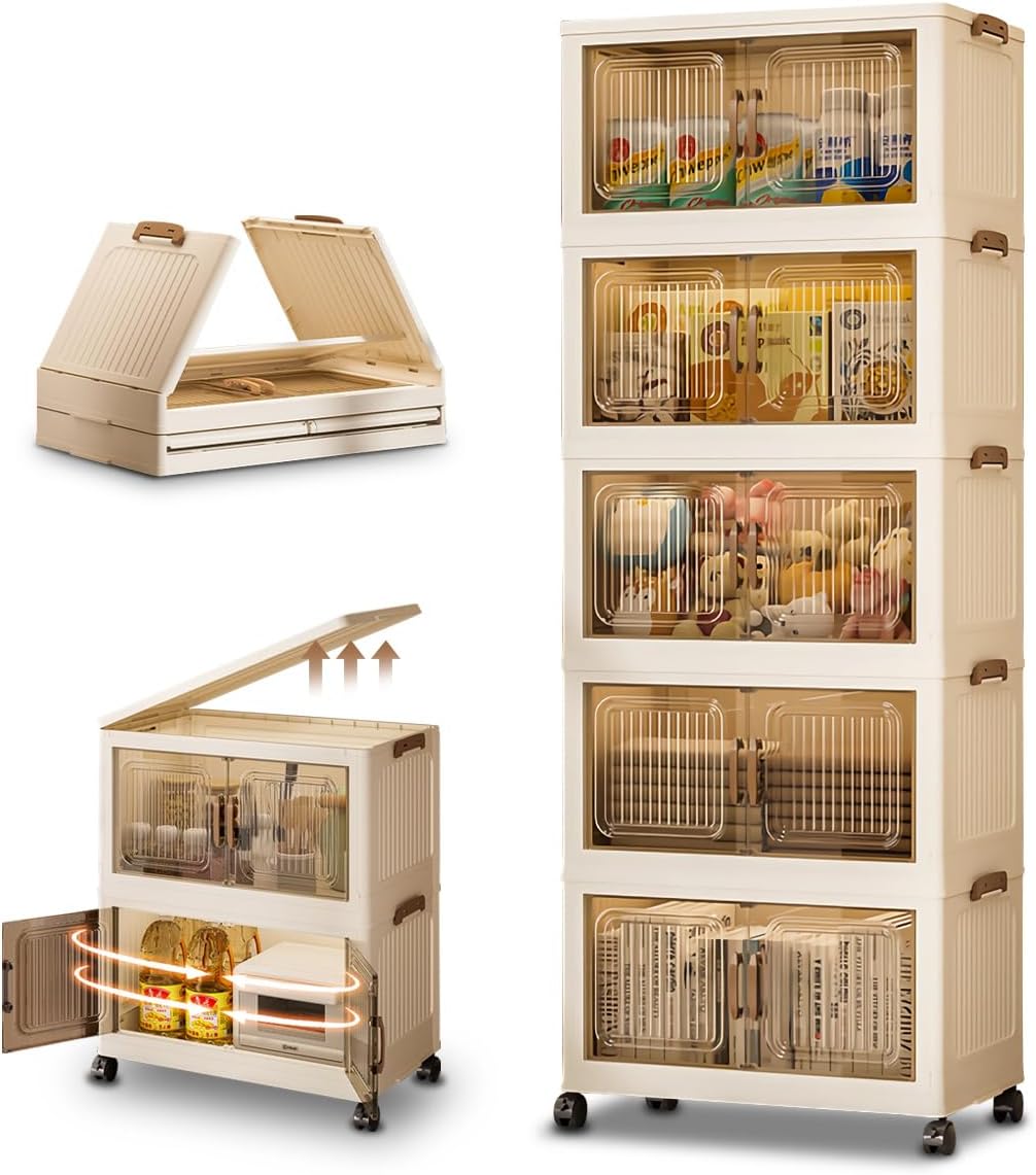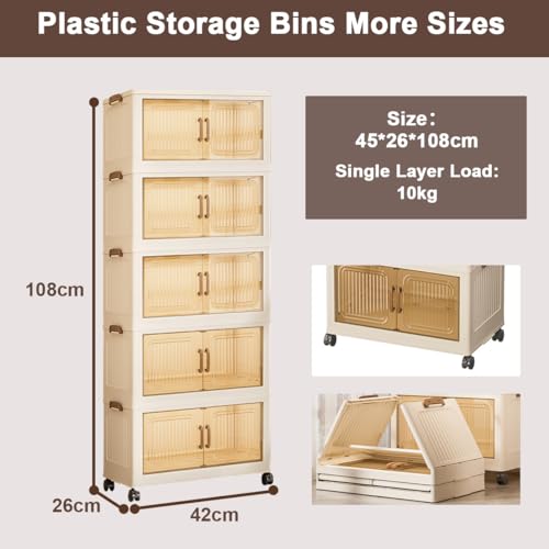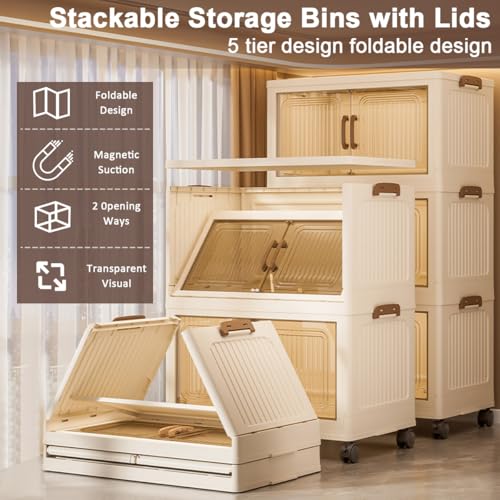 Cestbella 5-Tier Stackable Storage Bins with Lids & Wheels