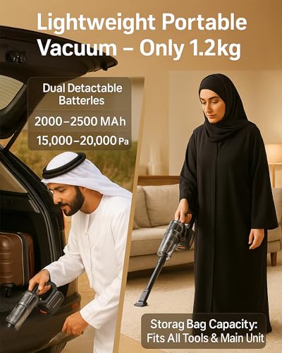 High Power Cordless Vacuum Cleaner with Dual Batteries & Accessories