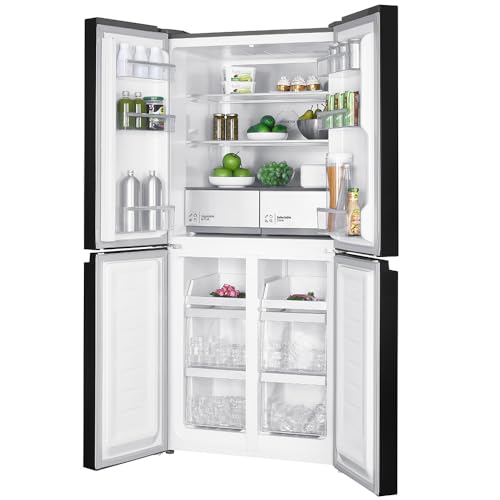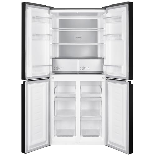 - 610L gross capacity with 466L net storage, featuring a bottom freezer and four wide-opening doors.