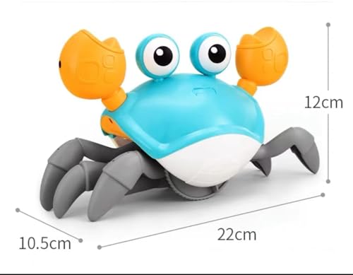 - Interactive crawling crab toy that avoids obstacles and plays cheerful music.
