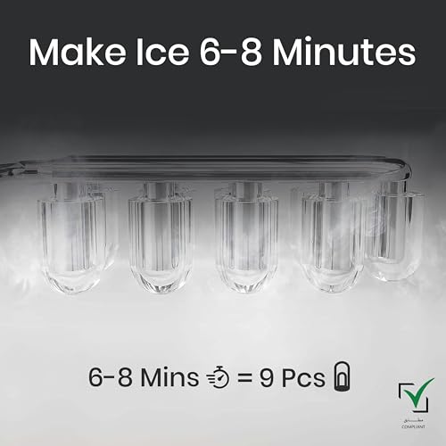 - Ice ready in just 6-8 minutes for small cubes and 5-7 minutes for large cubes.