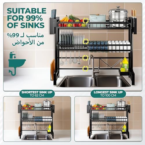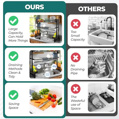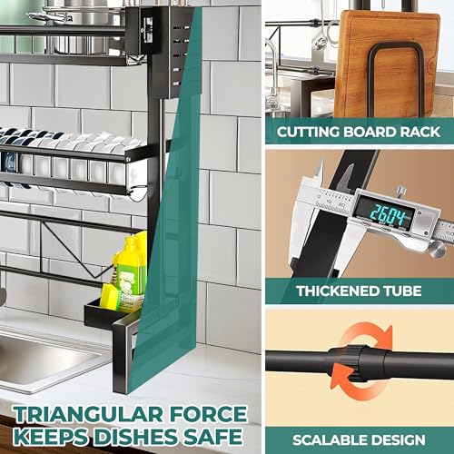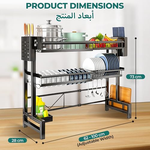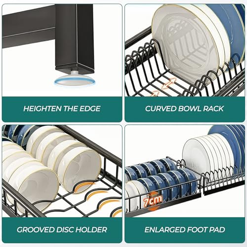 Large Stainless Steel Over Sink Dish Drying Rack with Utensil Holder