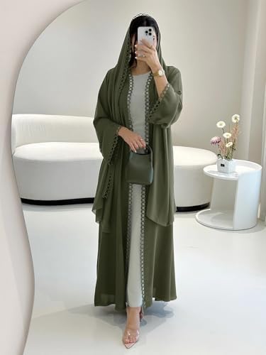 Transform your look and embrace modest fashion with the Open Abaya Set With Lace Trim & Chiffon Headscarf today!