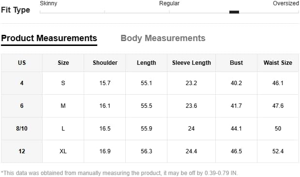 • XLarge: US 12 | Shoulder: 16.9" | Length: 56.3" | Sleeve Length: 24.4" | Bust: 46.5" | Waist: 52.4"