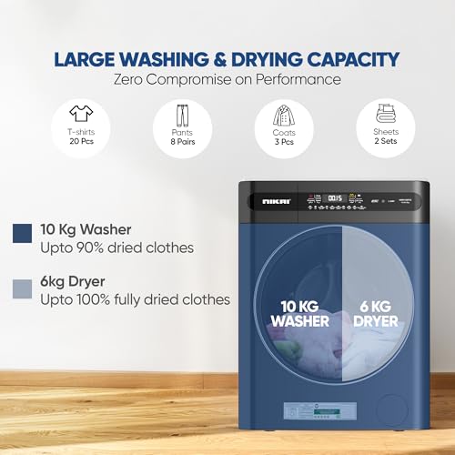 Nikai 10/6 Kg Fully Automatic Washer Dryer with 18 Programs