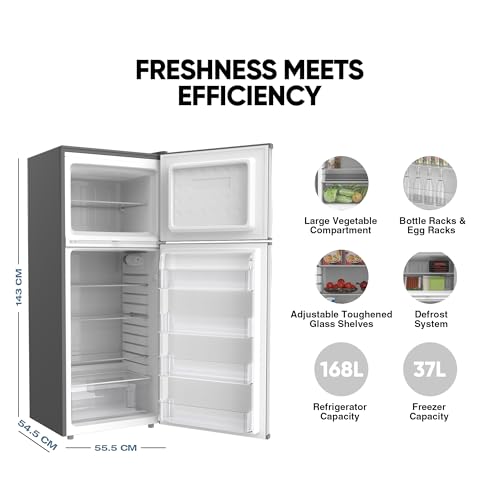 • Net: 205 Liters (168L Refrigerator & 37L Freezer)