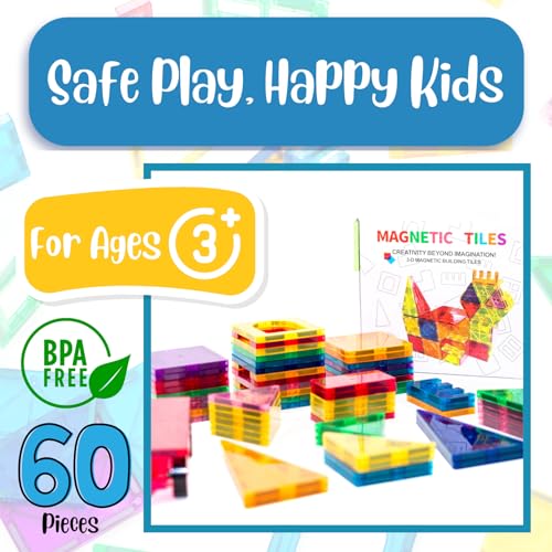 - 60-piece set of premium magnetic tiles designed for children aged 3 and up.
