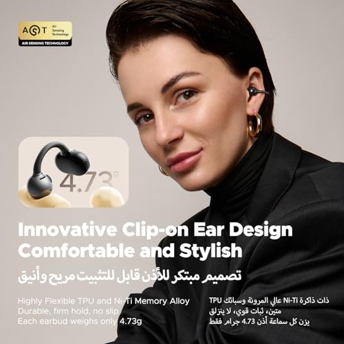 - Revolutionary open-ear clip-on design for comfort and stability, weighing only 4.73g.