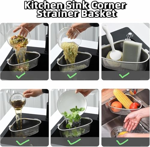 Stainless Steel Corner Sink Drain Rack & Strainer Basket