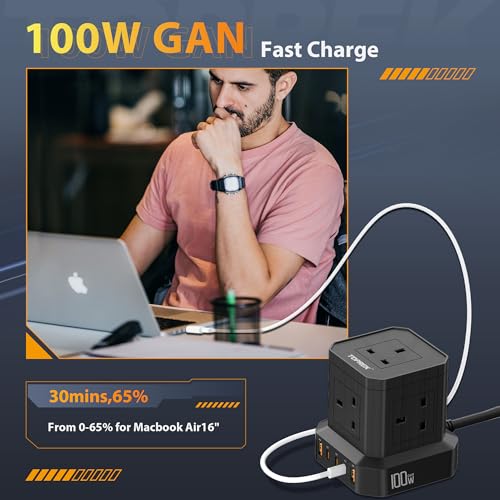 TOPREK 100W PD3.0 Fast Charge Multi Plug USB Extension Lead