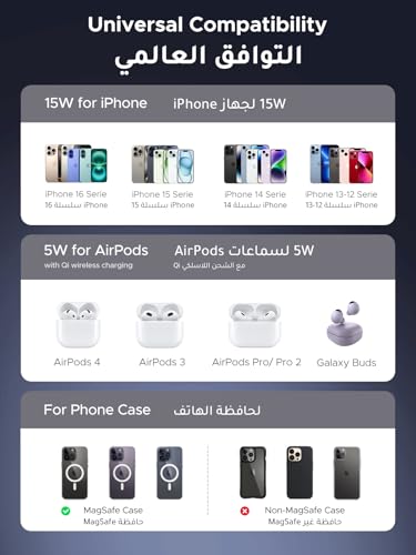 - Compatible with iPhone 17-12 series, AirPods Pro/3/2, and other Qi-enabled devices.