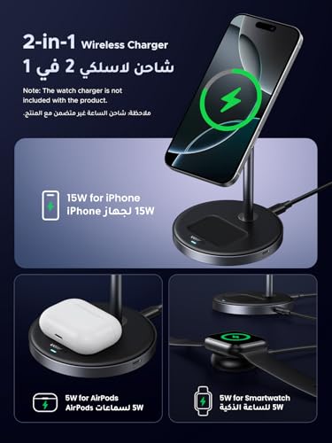 - 2-in-1 design allows simultaneous charging of iPhone and AirPods.