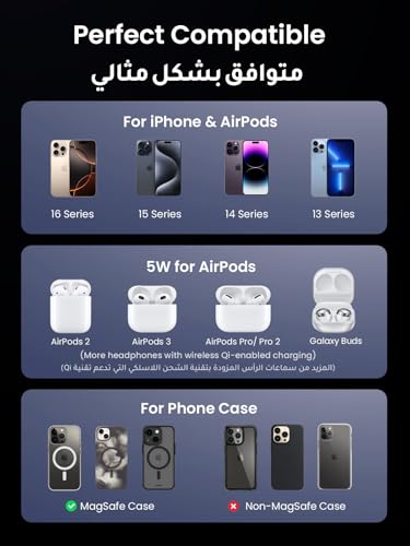 • Compatibility: iPhone 17-12 series, AirPods, Apple Watch Series 9-2, and other Qi-enabled devices