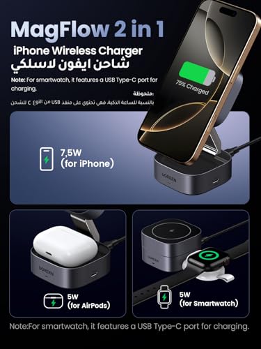 Specification: UGREEN 2-in-1 MagFlow Wireless Charging Station for iPhone and Apple Watch