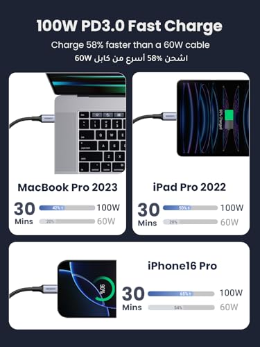 UGREEN 2M USB C Cable 100W Fast Charge for iPhone & MacBook
