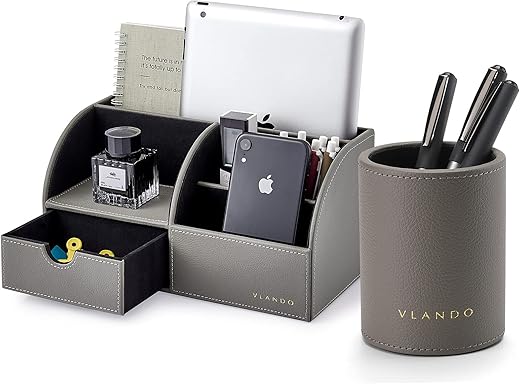 Vlando Desk Organizer Caddy with Drawer – Grey Storage Solution