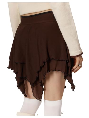 Elevate your wardrobe with the GORGLITTER Women’s Asymmetrical Tiered Ruffle Mini Skirt in a stunning Coffee Brown. This enchanting skirt embodies the fairycore aesthetic, making it a must-have for any fashion-forward woman.